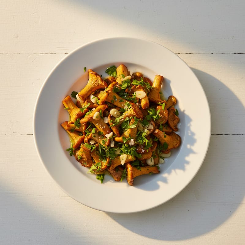 Ciuperci champignon rumene și aromate, gătite la tigaie cu usturoi și pătrunjel proaspăt. O rețetă simplă și rapidă, perfectă ca garnitură sau preparat de post.