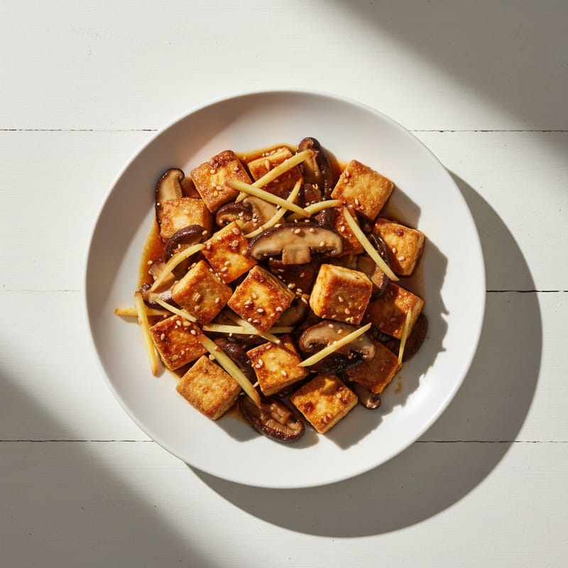 Tofu cu Ciuperci Shiitake la Tigaie