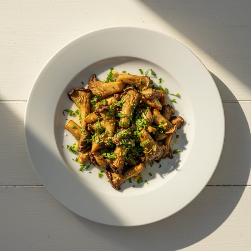 Ciuperci Pleurotus la Tigaie cu Usturoi