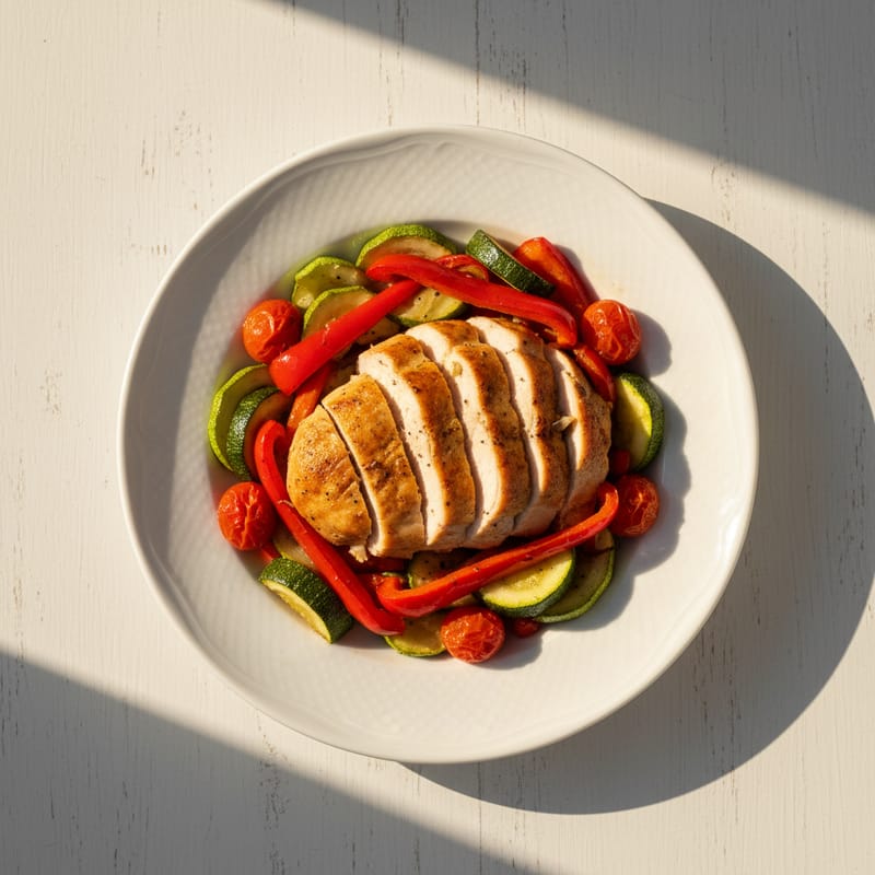Rețetă sănătoasă și rapidă cu piept de curcan la tigaie, însoțit de legume colorate. Perfect pentru o cină echilibrată, bogată în proteine și vitamine.