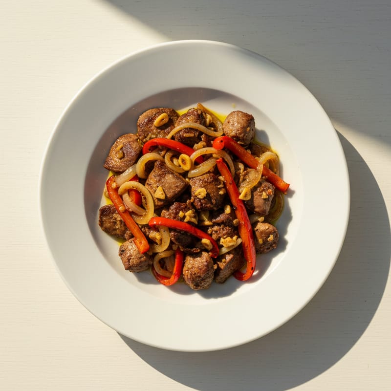 Ficat de Pui la Tigaie cu Ceapă și Ardei