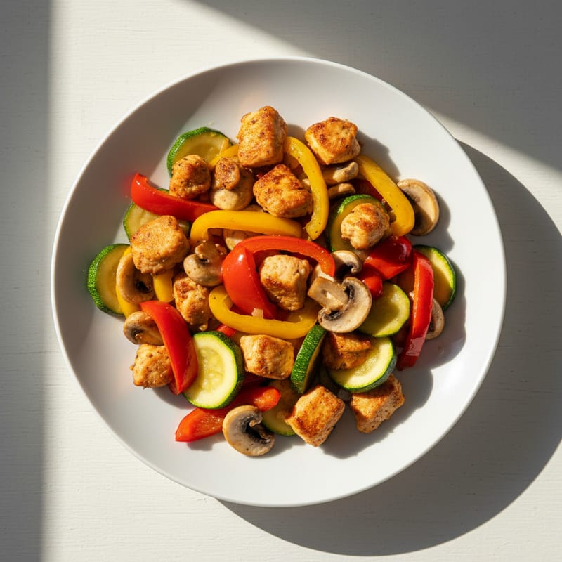 O rețetă simplă și sănătoasă de pui cu legume la tigaie, gata în 30 de minute. Perfectă pentru o cină rapidă și echilibrată, plină de proteine și vitamine.