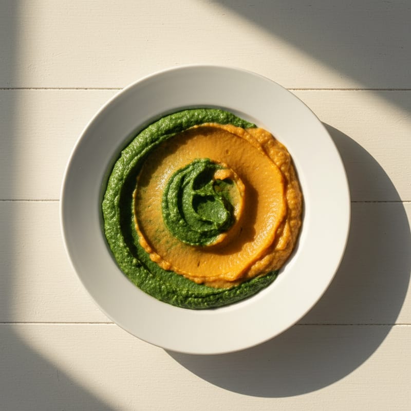 Un piure cremos și nutritiv din spanac proaspăt și cartofi dulci, perfect pentru bebelușii de la 1 an în sus. Bogat în fier, vitamine și minerale esențiale pentru dezvoltarea sănătoasă.