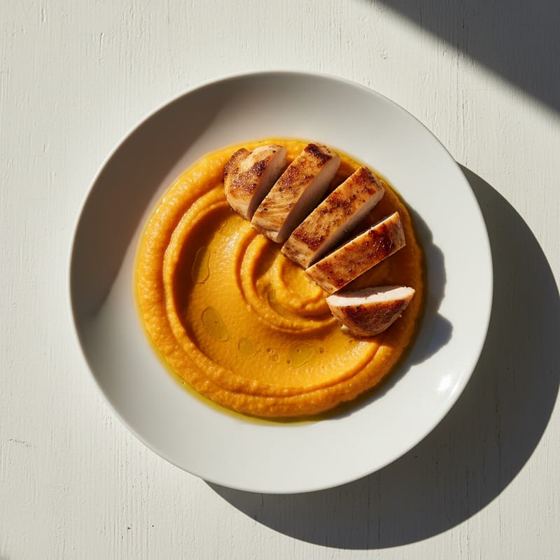 Piure de Morcovi și Cartofi Dulci cu Pui