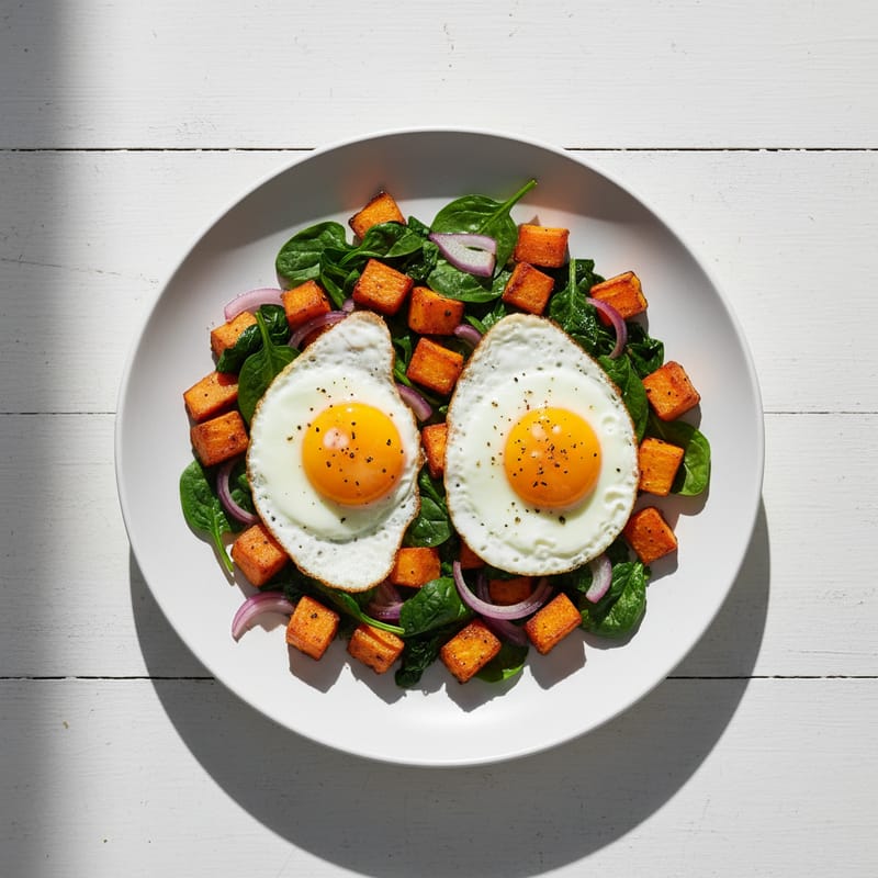 Tigaie de Cartofi Dulci Jamila cu Ou și Spanac