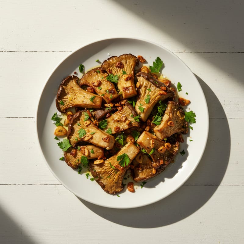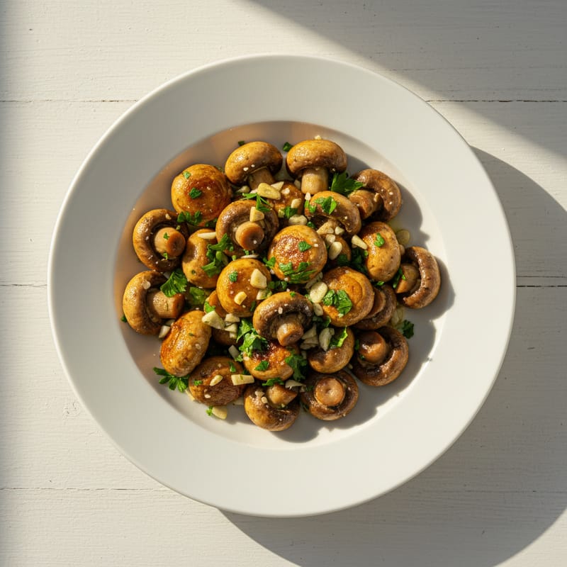 Ciuperci Champignon la Tigaie cu Usturoi și Pătrunjel