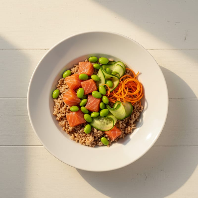 Poke Bowl cu Somon și Edamame