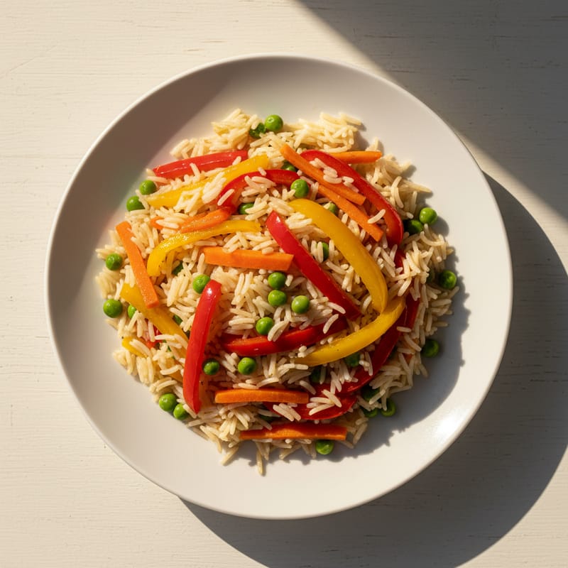 O garnitură sănătoasă și colorată cu orez brun integral și legume coapte la cuptor. Perfectă pentru orice fel principal de carne sau pește.