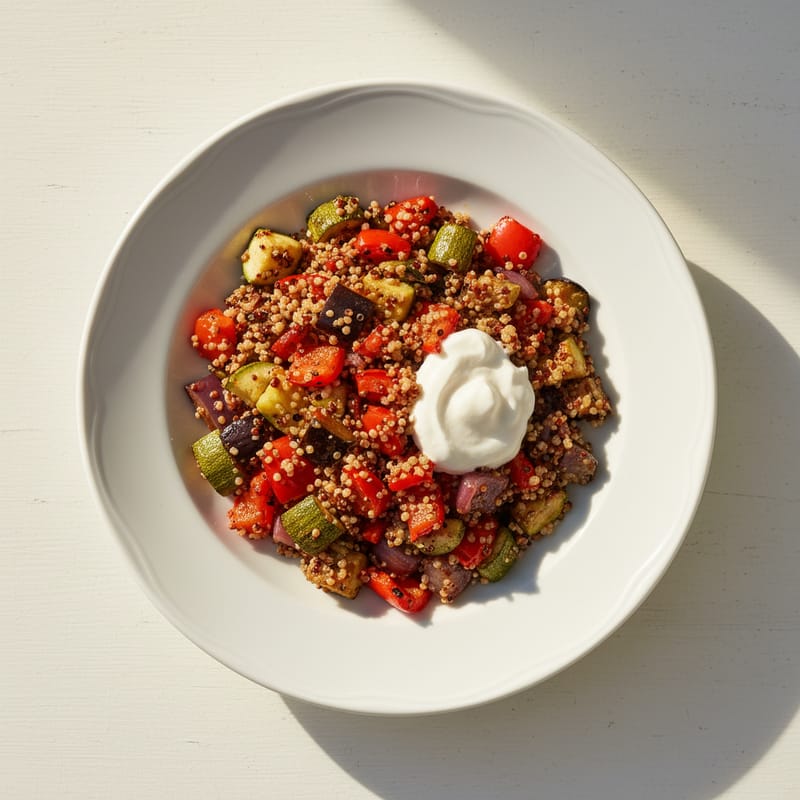 Quinoa cu Legume la Cuptor și Sos de Iaurt