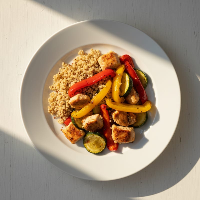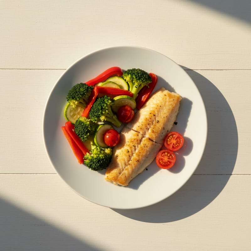 O cină sănătoasă și completă preparată la cuptor. Fileul de peste alb se îmbină perfect cu legumele aromate, oferind o masă echilibrată și ușor de preparat.