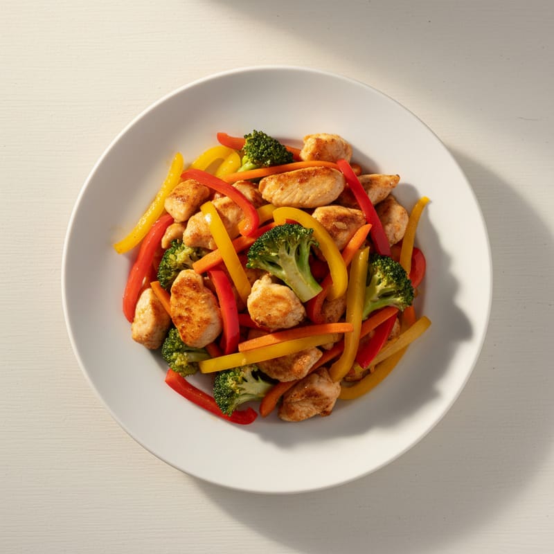 Un preparat asiatic delicios și sănătos cu piept de pui și broccoli proaspăt, glazurat cu sos aromat și presărat cu susan. Perfect pentru o cină rapidă și echilibrată.