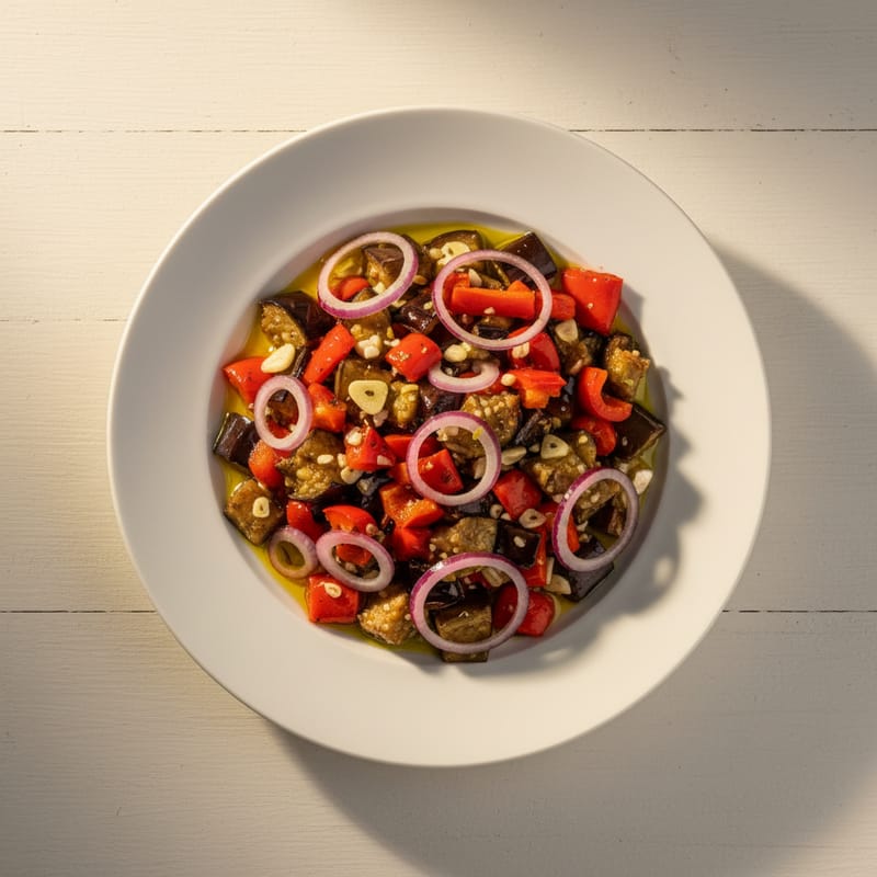 10 minLasă salata să se odihnească 10 minute la temperatura camerei pentru ca aromele să se îmbine. Servește ca atare sau ca garnitură pentru un prânz complet.