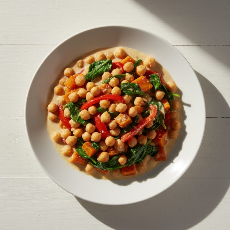 Un curry cremos și aromat cu naut, legume și lapte de cocos, perfect pentru o cină hrănitoare. Bogat în proteine vegetale și arome exotice.